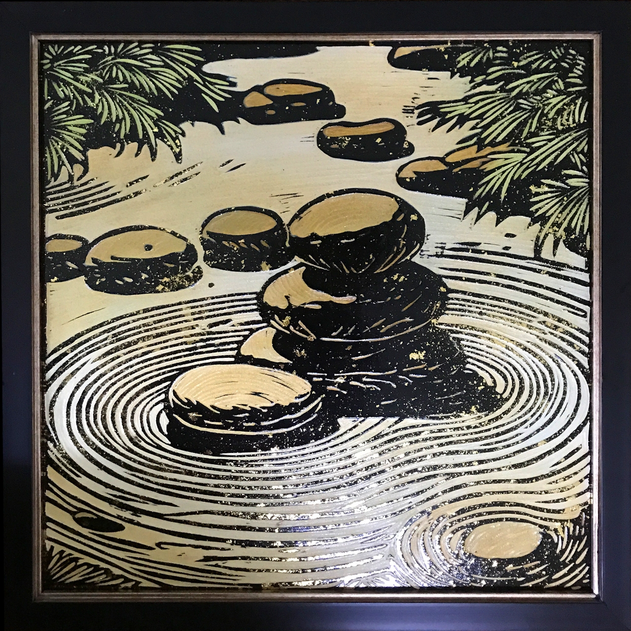 Mixed media on hand-carved relief panel