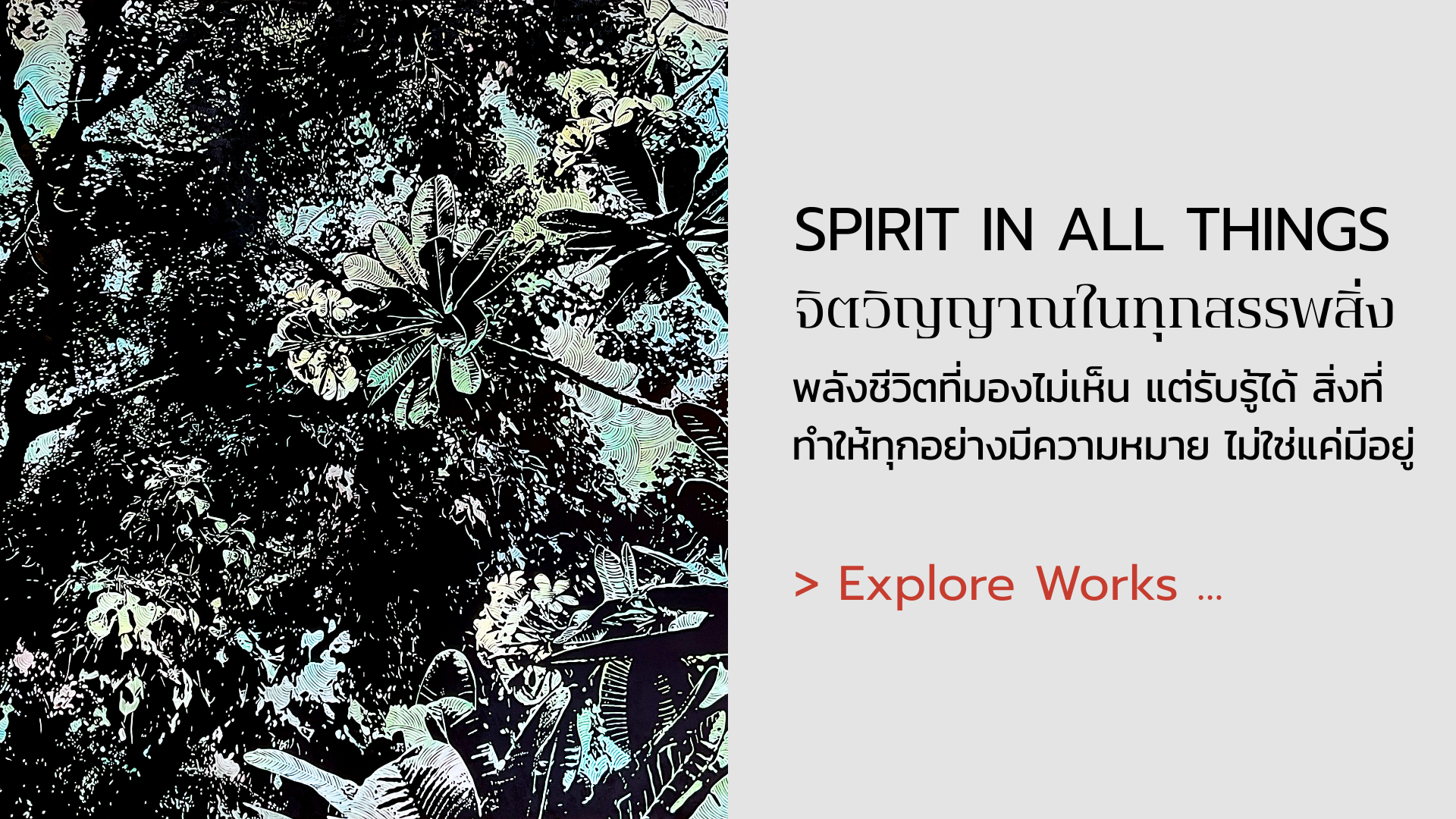 สำรวจผลงานอันหลากหลายของ เอกณัฏฐ์ เธียรเศรษฐกุล ที่ถ่ายทอดสัจธรรม ศรัทธา และมิติทางจิตวิญญาณ ผ่านศิลปะร่วมสมัยเทคนิคสื่อผสม แต่ละผลงานทำหน้าที่เป็นบทสนทนาระหว่างประสบการณ์ภายในของศิลปิน กับความหมายของชีวิตที่ทุกคนต่างค้นหา