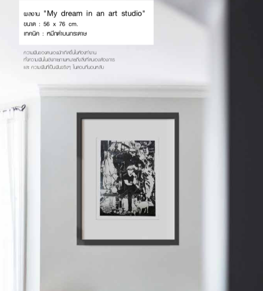 ผลงานชิ้นนี้วาดขึ้นมาจากการเห็นตนเองนั่งอยู่ในห้องทำงานของตนเอง สภาพแวดล้อมที่เกิดขึ้นเป็นโลกในอุดมคติที่ห้อมล้อมไปด้วยจินตนาการถึงงานศิลปะของตนเอง สัตว์เลี้ยง ความรู้ ความหวัง ความมุ่งหวัง ในห้องมีข้าพเจ้านั่งอยู่ตรงกลางกำลังนั่งทบทวนในสิ่งที่ขึ้นว่าเป็นเรื่องจริงหรือว่ากำลังอยู่ในความฝัน เพราะบางครั้งเราก็แยกแยะความจริงกับความฝันไม่ออกว่าสภาพที่อยู่ปัจจุบันเป็นแบบไหนกันแน่