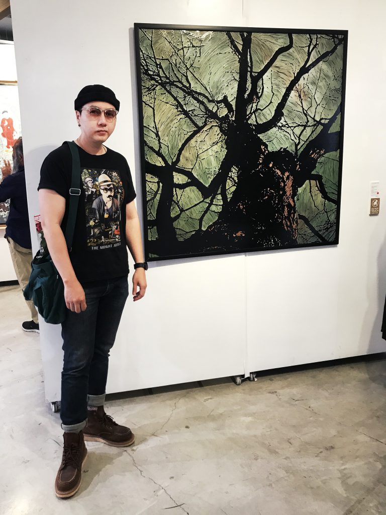 เอกณัฏฐ์ : จริง ๆ ผลงานชุดนี้ (Tree Spirit) ต่อยอดมาจากผลงานที่มีชื่อว่า Change with Time (เปลี่ยนแปลงไปตามกาลเวลา) ที่เคยจัดแสดงที่ Art Gallery Central Plaza เชียงราย ครั้งแรกกับกลุ่มพุทธศิลป์ ซึ่งผลงานนั้นคือต้นไม้ต้นแรก