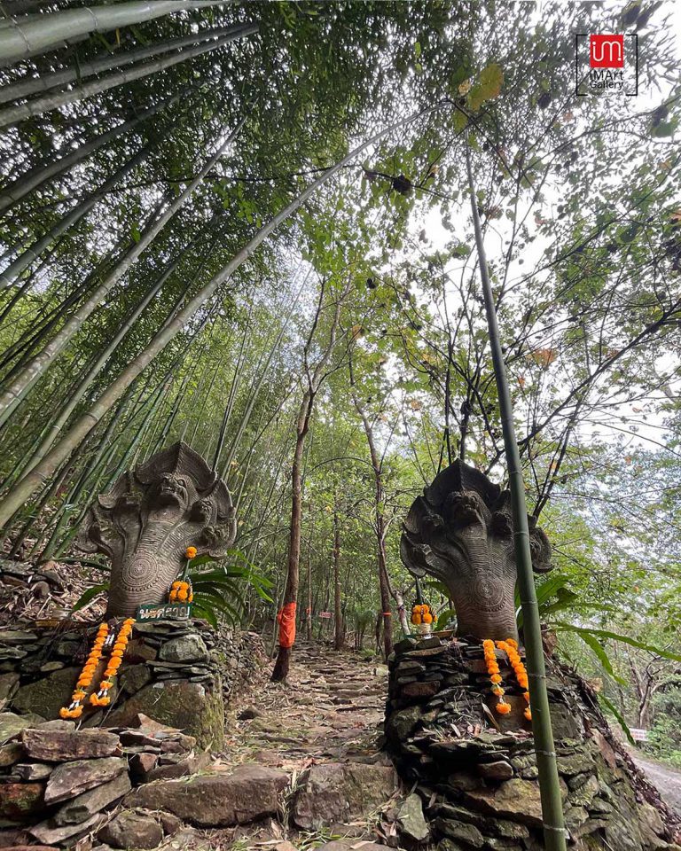 ภายในพุทธอุทยานจะมีสิ่งศักดิ์สิทธิ์ให้กราบไหว้บูชาหลายองค์ ที่นี่มีความเงียบสงบ มีมนต์ขลัง และเนื่องจากเป็นพื้นที่เขตอุทยาน สภาพป่าไม้ จึงมีความอุดมสมบูรณ์ มีต้นไม้หลากหลายชนิด เป็นป่าไม้ที่เต็มไปด้วยต้นไม้นานาพันธุ์ที่พึ่งพากัน ผลงานที่ถ่ายทอดออกมาจึงให้ชื่อว่า “เติบโตไปด้วยกัน”